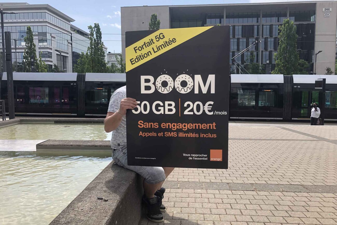 L’objectif de l’opération était de créer du trafic dans le shop Orange du Kirchberg Shopping Center à l’occasion du lancement du forfait BOOM : forfait 5G Edition limitée : 50GB, appels et SMS illimités pour seulement 20€/mois ! Une offre exceptionnelle et sans engagement valable jusqu’au 12 juin…