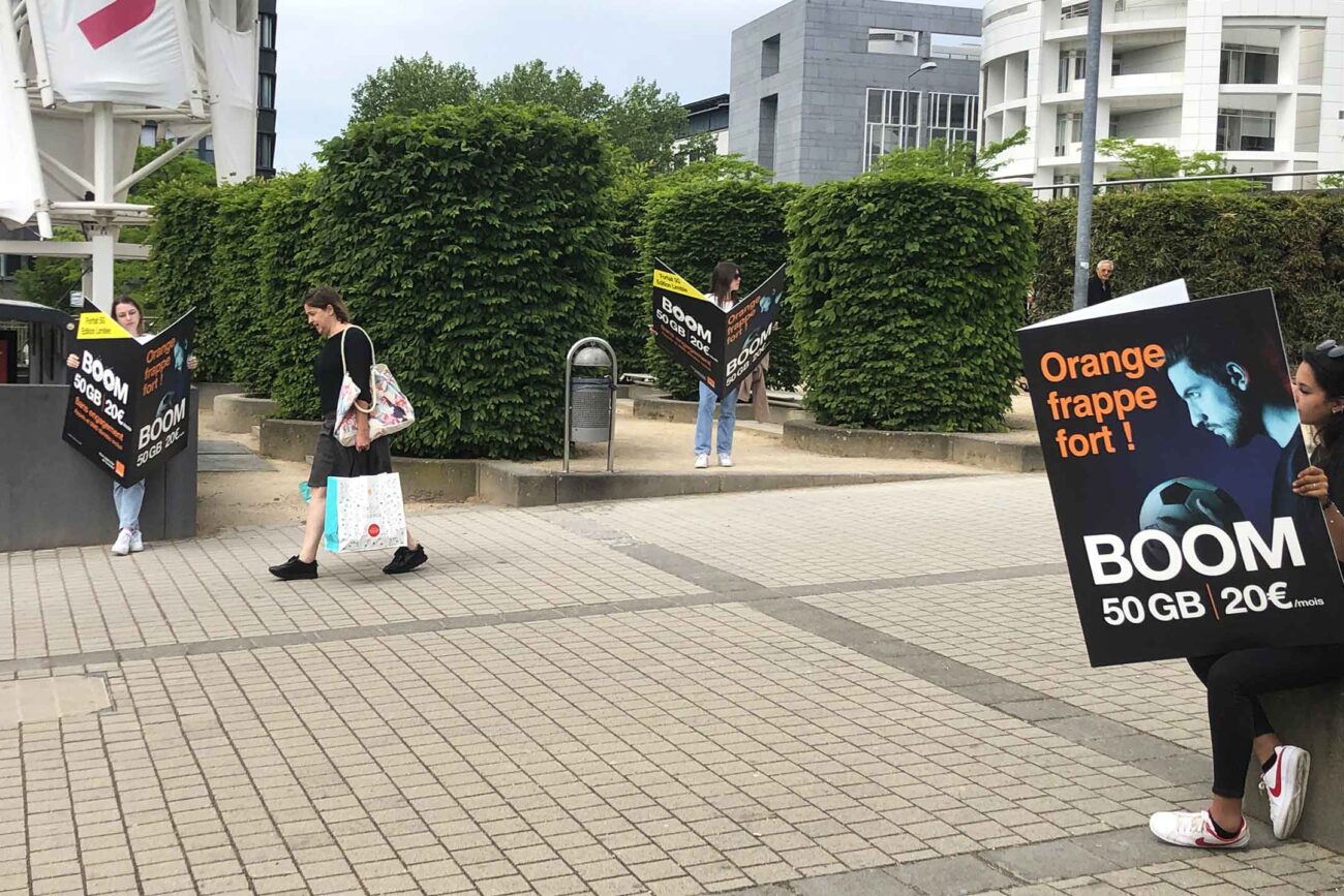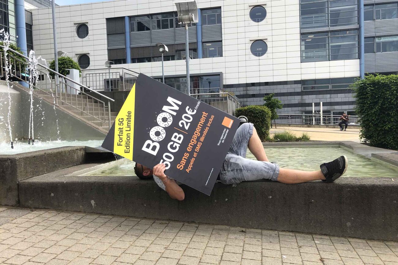 The aim of the operation was to generate traffic in the Orange shop at Kirchberg Shopping Center for the launch of the BOOM plan => 5G Limited Edition plan: 50GB, unlimited calls and texts for only €20/month! An exceptional, no-obligation offer valid until June 12th…