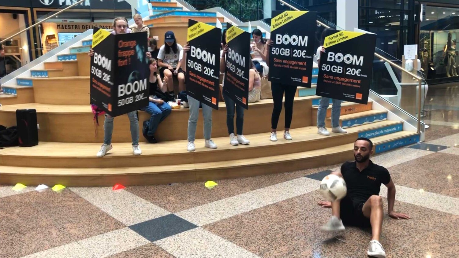 At the time, Orange Luxembourg was looking for an original and impactful medium to promote its “BOOM” plan in Orange stores across Luxembourg. To accompany the action, a distribution of Donuts in Shops was planned, as well as a demo and a freestyle football animation in the shopping mall.