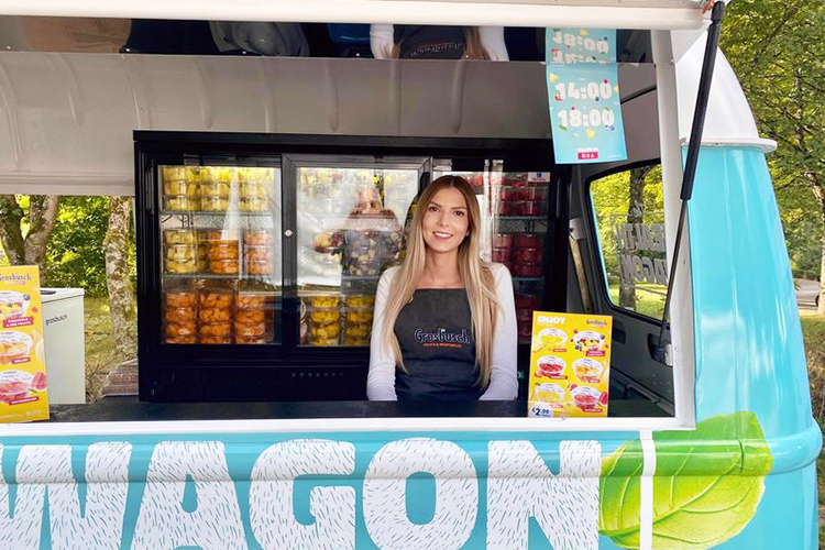 An unusual event in this “Fruit Truck” in the colors of the “Grosbusch” brand, to offer the public present delicious pre-packaged fruit shakers…