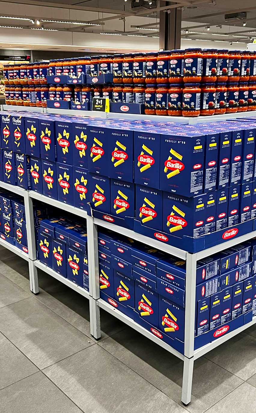 The product layout is optimized in central aisles, promotional islands and gondola heads, with strict compliance with planograms, signage and the integration of new products. To maximize the visual impact, the highlights included the installation of thematic islands, an arrangement of specific furniture and POS supports.