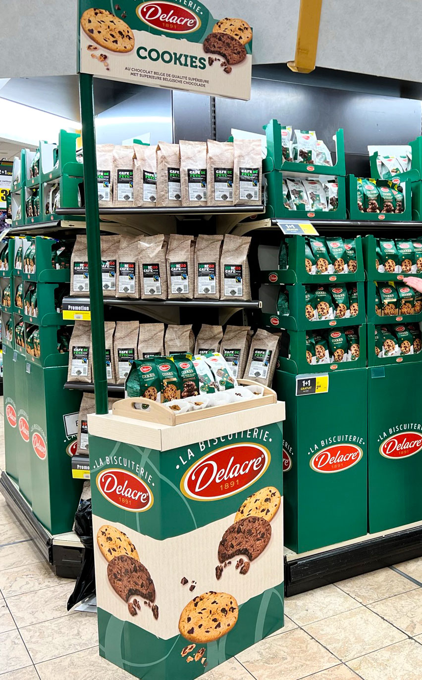 Present near the Delacre showcases, they won over consumers with a proactive approach, a masterful product pitch, and an impeccable presentation of the new products. From gourmet cookies to dark chocolate shortbread and intense caramel biscuits, our teams orchestrated friendly tastings, while highlighting the origin of the ingredients, the artisanal expertise, and the use of Belgian chocolate.