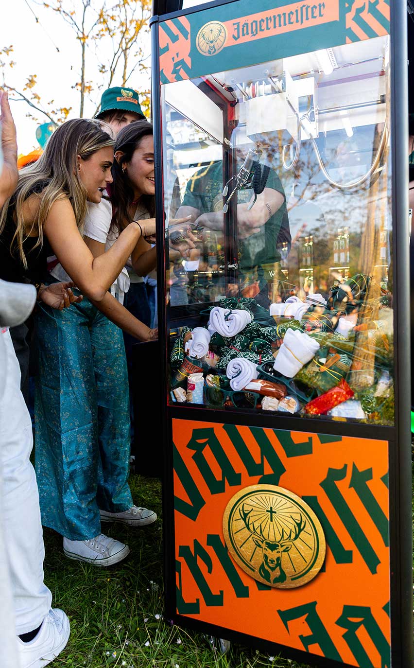 With the purchase of a Jagermeister shot, visitors of the day received a token to win goodies by playing our personalized gripper machines.